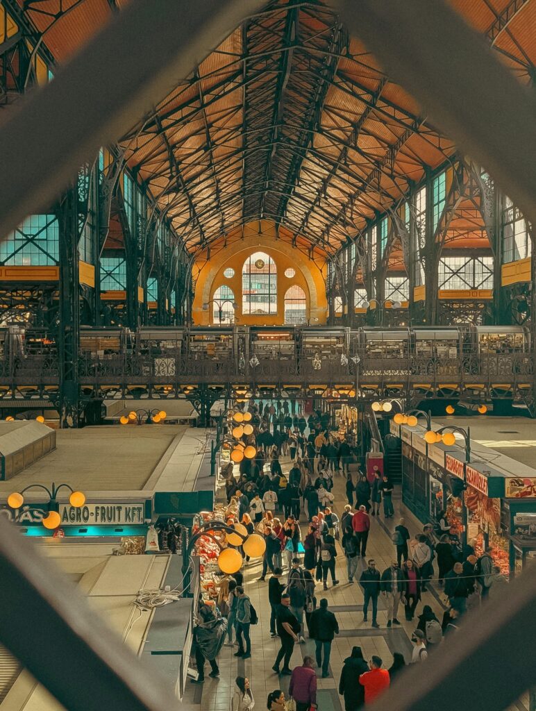 Și Central Market, pe care îl țineam minte mare, dar nu chiar atât de mare. Clădirea e imensă, din aia de sfârșit de secol XIX, cu acoperiș colorat și structură de fier, arată ca o gară, dar în loc de trenuri găsești paprika, cârnați, borcane, pâini, brânzeturi, langoș, turiști și încă alți turiști, suveniruri, fețe de masă, globuri de Crăciun și seturi de sah sculptate. E locul din Budapesta unde iau mereu prânzul și niciodată nu am reușit să termin toată porția aia uriașă de paprikaș. Tot de mâncare, am găsit humus cu gulaș și mi s-a părut că am mâncat ce e mai bun din ambele lumi.