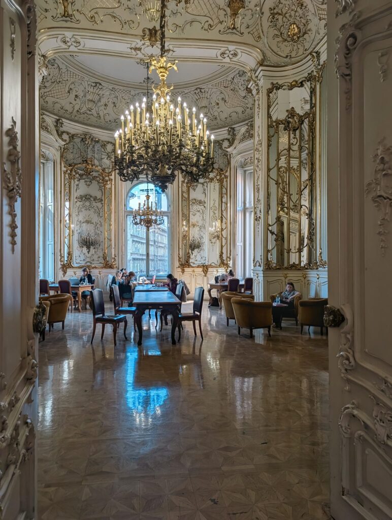 Dar pentru mine cel mai frumos loc din Budapesta, pe care l-am descoperit abia acuma, rămâne Biblioteca Ervin Szabó, o bijuterie mai puțin aglomerată, care poate fi vizitată și de turiști. La etajul 4 se află un palat neo-baroc din secolul al XIX-lea, cu săli în stiluri diferite, în care te poți așeza pe unul dintre scaunele sau canapelele vechi de peste o sută de ani să citești sau să te bucuri de atmosferă.
